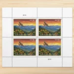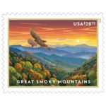 Design by Dan Cosgrove, it pictures mountain scenery near Newfound Gap with a red-tailed hawk.