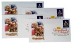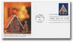This stamp is part of a block of four issued for the 2013 holiday season. Designers constructed the gingerbread houses specifically for the stamp.